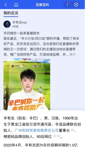 最近,千万网红辛巴在百科里分享了很多近况,不一样的是,这次他是以“公益直播”的形式与大家相见。